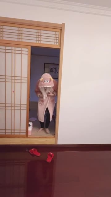 Footage shows the jolly father emerging into the bedroom wearing a pink robe and asking his six-month-old daughter Xixi to come with him in Liaoning, China on January 15. 2024-01-25 10:16:52