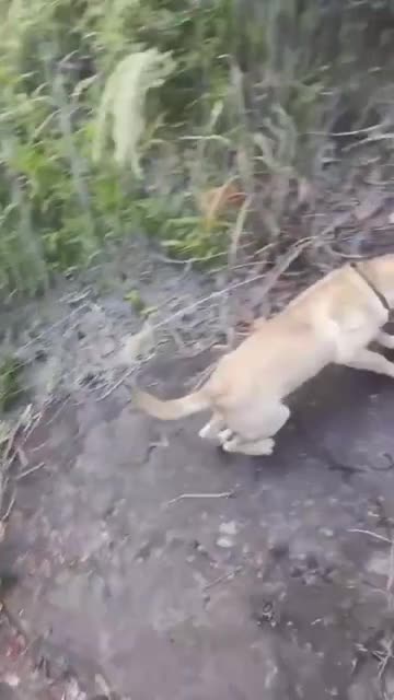 Footage shows the pooch ascending the stone ground but sliding down the slope before being thrown off into a grassy ditch near a stairway in Zhejiang, China, on January 3. 2024-01-25 11:15:39