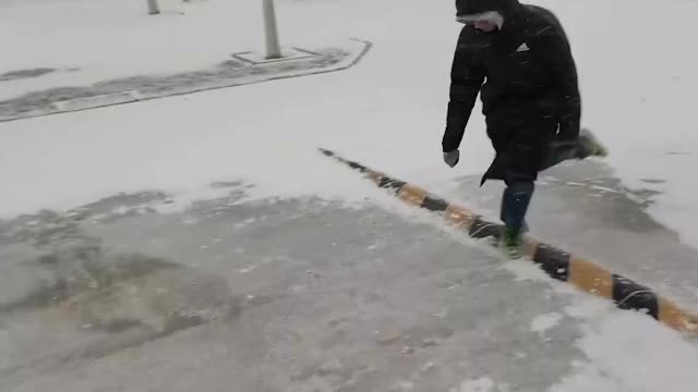 Footage shows the youngsters passing through the path covered in thin sheet of ice and immediately stumbling down in Hebei province on December 14. 2024-01-25 11:16:11