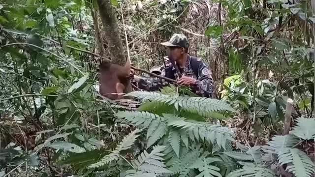 Wildlife staff were patrolling the forest in the Khao Luang National Park when they found the hapless female stump-tailed macaque clinging to a tree while its neck was ensnared. 2024-01-25 15:39:15