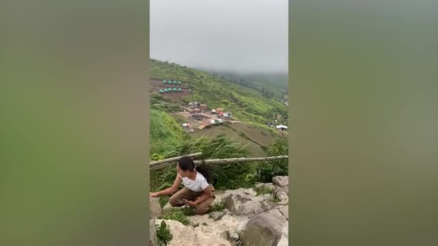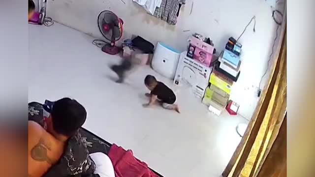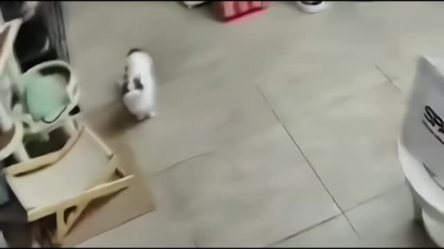 CCTV footage shows the moggy named Juju staring at the surveillance in the kitchen and standing on his hind legs before gesturing a friendly wave in Zhejiang province on November 13.