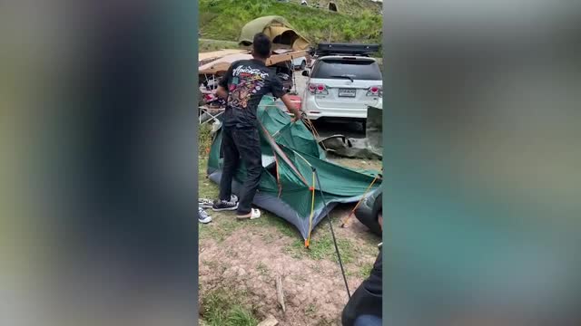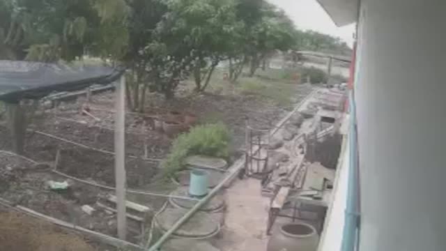 CCTV footage shows the female resident walking through the garden and stepping on the hole's cover that swivelled open in Ayutthaya, Thailand. 2024-03-07 14:04:16
