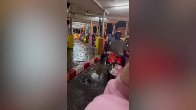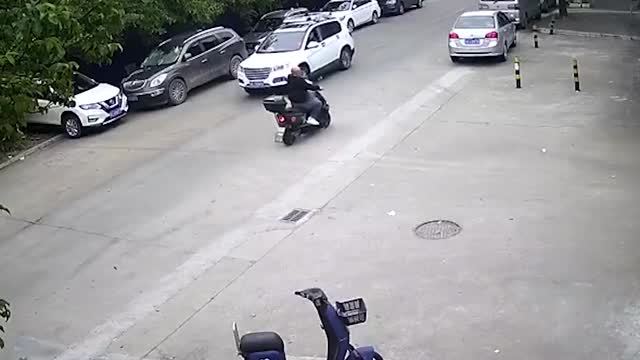 This isthe dramatic moment a motorcyclist carrying dozens of unlit firecrackers abandons his bikeand runs for safety when the explosives suddenly go off. 2024-03-07 12:40:00