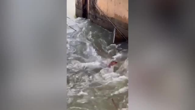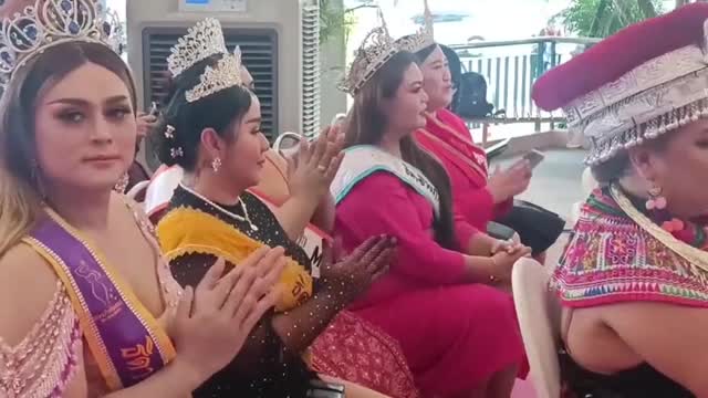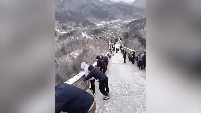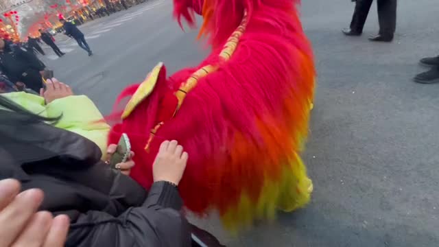 Footage shows the dragon shaking its rear end to the women who touched it before the amused performer stood up and laughed in Hebei province, China, on February 9.