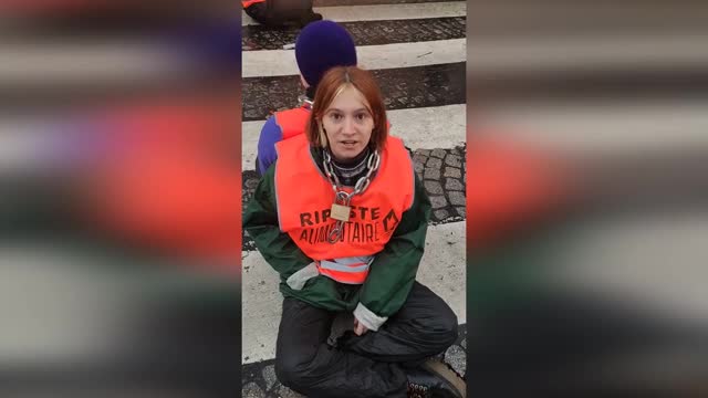 Climate extremists block road in Paris, France