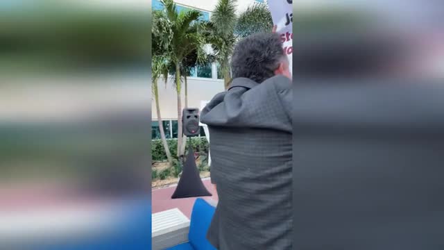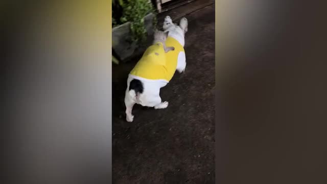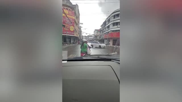 Footage shows Dada, a one-year-old canine, smelling the crisps displayed on the stall. It chose the green packet and casually walked away with it.