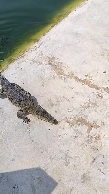 The reptiles gathered to the island in the middle of their pool when the caretaker arrived with a bucket of meat but a greedy one - bigger compared to his pals - scampered behind the farm worker for more in Chainat province, Thailand on March 9.