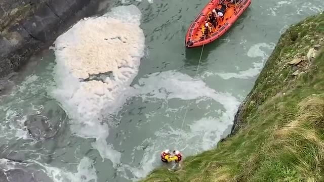 The Irish Coast Guard officers arrived with the Atlantic 85 class lifeboat to help Dixie, a terrier mixed breed pooch who fell from the cliff on March 19 morning. 2024-03-20 15:03:06