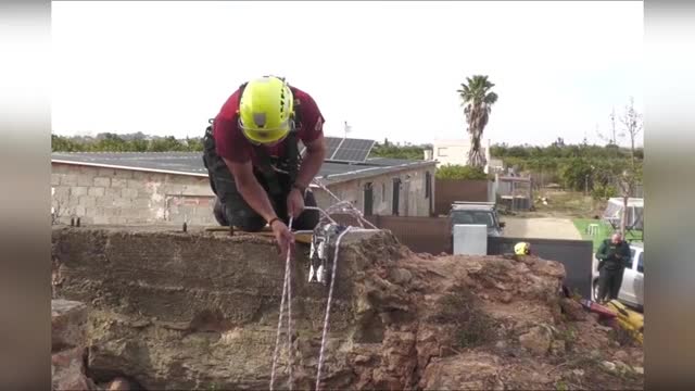Footage shows the emergency responders from the Valencia Provincial Fire Consortium setting up ropes above the hole so they could rappel down in Valencia on March 18. 2024-03-20 15:02:20
