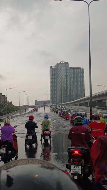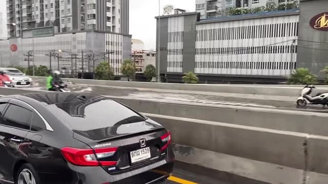 The tropical downpour accompanied by thunder and lightning battered Chonburi province in the east of the country. Authorities issued weather warnings advising small vehicles to avoid the torrential rain. 2024-03-20 14:50:47