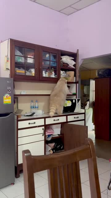 Pajeekan Anantachairit caught her albino pet raccoon named Babeb ransacking for snacks in the overhead cabinets in Chonburi, Thailand. 2024-03-20 21:07:55