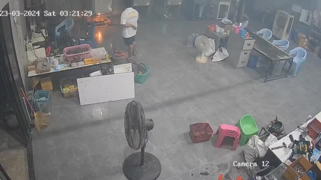 CCTV footage shows the blaze starting as a flicker before bursting and engulfing the machine in Samut Sakhon province, Thailand on March 23. 2024-04-09 13:00:15
