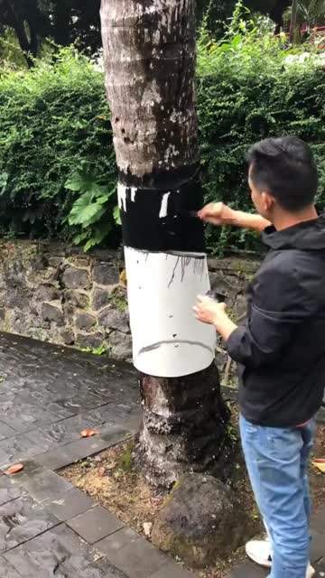 The painter Li covered a portion of the coconut trunk with white base and created the hyperrealistic art in Sichuan province, China on February 23. 2024-04-09 13:03:33