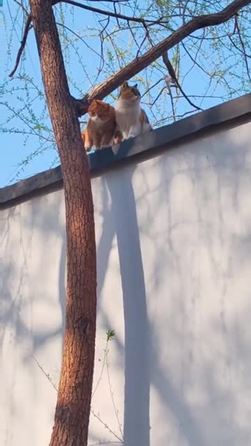 The felines were on top of the 15ft-high concrete structure as they seemingly tried to figure out how to descend in Beijing, China on March 22. 2024-04-09 13:03:07