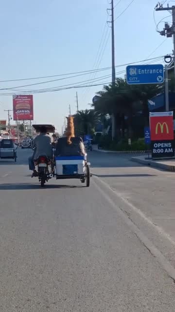 Footage shows the Aspin pooch nestled on top of the three-wheeled vehicle as seen from a motorcycle behind them in Cabanatuan City on April 1. 2024-04-09 12:56:32