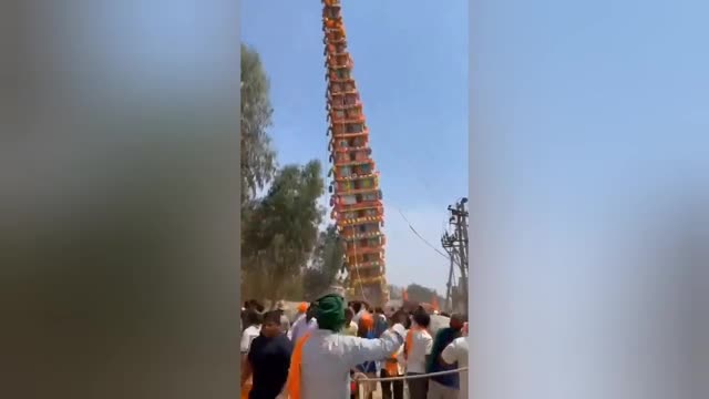 Worshippers had spent months painstakingly building the 120ft tall chariot for a Hindu ceremony at the Huskur Madduramma temple in Bangalore on Saturday afternoon. 2024-04-09 11:57:15