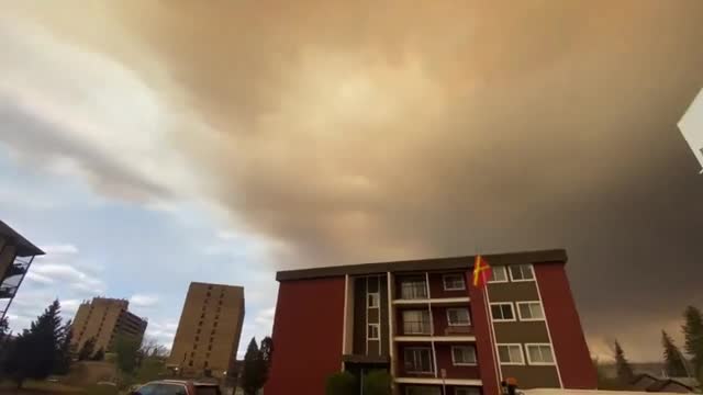 Footage shows the sky darkening due to the build-up of smoke and gases from the fires as seen from Fort MucMurray in Alberta on May 15. 2024-05-17 16:29:03