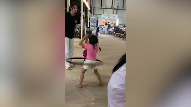 Footage shows the lively girl smoothly twirling the hoop on her waist while her friends cheer for her at Mahasarakham University on December 15.
