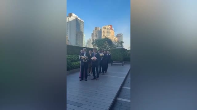 Footage captured by Sita Potipipith shows the groom and his family carrying bizarre dowry payments to the bridge in Khlong Toei, Bangkok, Thailand, on December 30.