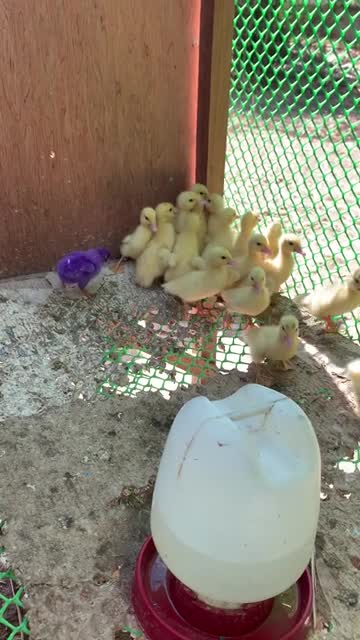 Purple chick terrifies its brothers and sisters