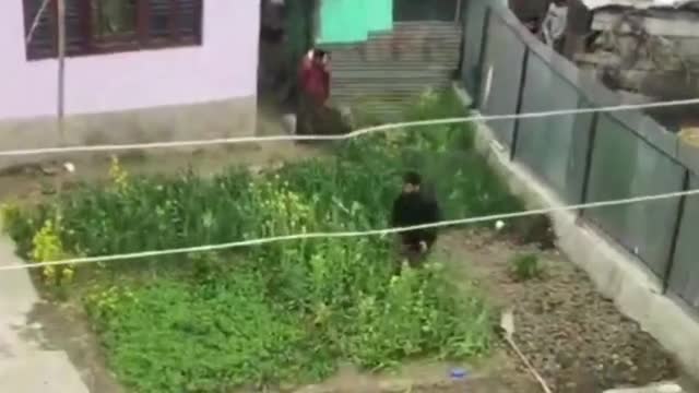 Footage shows the beast snarling as it roamed the neighbourhood in Ganderbal in Jammu and Kashmir on April 3.