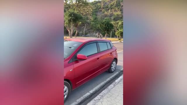 Amusing video shows the curious macaque staring at the camera up close before disappearing from view - only to pop back up to inspect the device again.