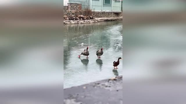 The hilarious video captures a steadfast duck waddling on afrozen pond with its webbed feet slipping and sliding with each determined step. 2024-02-23 09:53:45