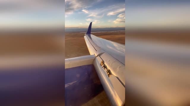 Footage shows damage to the Boeing 757-200 wing slat near the engine as flight 354 was taxiing on the San Francisco International Airport runway on February 19. 2024-02-23 10:32:32