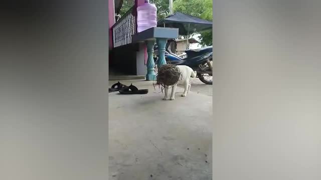 The hapless moggy, Tian, shocked her owners when she arrived with her head trapped in a bundle of dried grass in Nakhon Sawan, Thailand.