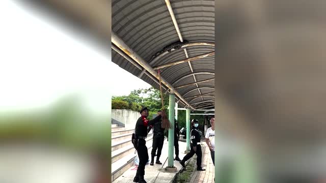 The officers were called by students and professors when the 8ft-long reptile was spotted clinging to the structure at Ramkhamhaeng University in Bangkok, Thailand, on November 12. 2025-11-15 02:30:00
