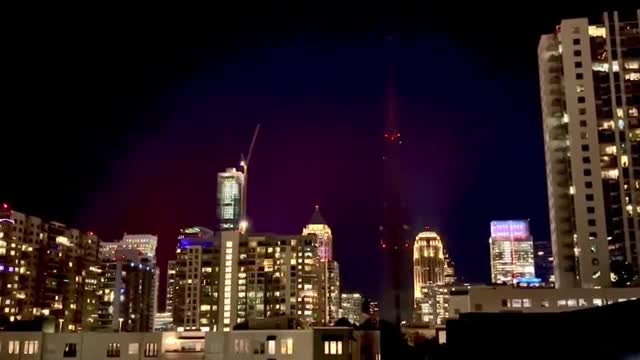 Footage captures the natural spectacle glowing above the city on the night of November 12, with the city's buildings in the foreground. 2025-11-14 18:15:59