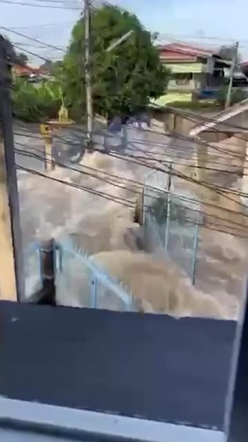 Footage shows the raging torrent submerging streets in Singburi province after a temporary embankment collapsed from rising water pressure on Wednesday afternoon. 2025-11-16 15:19:09