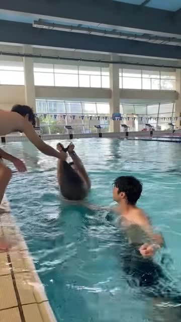 Footage captured by Mr Xu shows a youngster holding the black rubber headwear and dumping it directly onto his friend's head in the pool in Jiangsu, China. 2025-12-11 14:46:47