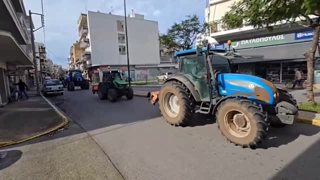 Footage shows farm vehicles entering the city of Kalamata, moving slowly along narrow urban streets lined with shops and apartment buildings on December 8. 2025-12-11 13:54:11