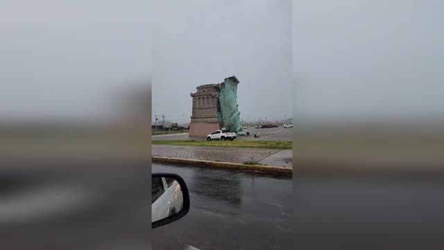 Footage shows the towering monument already toppled as a severe storm hit the city of Guaiba, Rio Grande do Sul, on Monday at around 3 pm local time. 2025-12-17 11:28:31