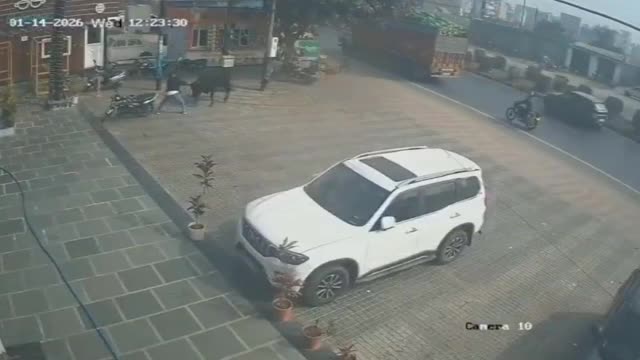 The quick-thinking man narrowly escaped serious injury after a stray bovine charged at him on a street in Meerut, Uttar Pradesh, on January 14. 2026-01-20 21:05:37