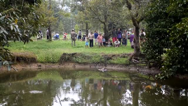 Heng Heng, 8, and Bua Khao, 10, were lying at the water's edge when relatives discovered the body of Anchan Phumarin, 80, floating face-down in the pond, on the morning of January 19. 2026-01-20 20:55:19