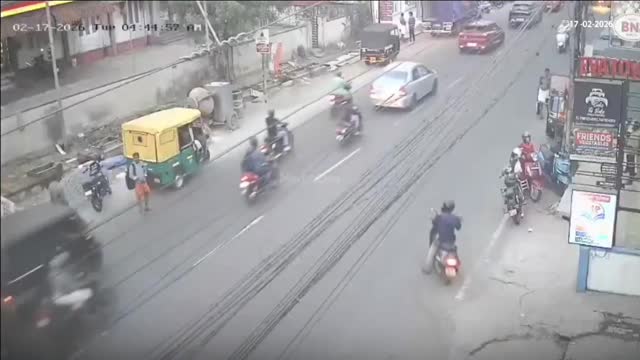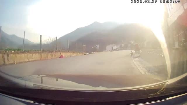 CCTV footage shows the blue-and-white bus blocking one lane, causing a traffic jam, as the driver waits to manoeuvre into the other lane in Guangdong, China. 2026-02-19 21:37:48