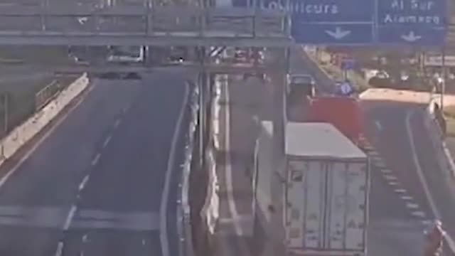 CCTV footage shows the lorry toppling on its side before exploding, engulfing the area in a cloud of smoke in the northern Santiago commune of Renca. 2026-02-20 12:20:24