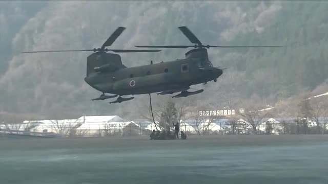 Footage shows a Boeing CH-47 Chinook from the Ground Self-Defence Force's 12th Helicopter Unit preparing for operations in Gunma Prefecture on Saturday. 2026-03-24 11:35:28
