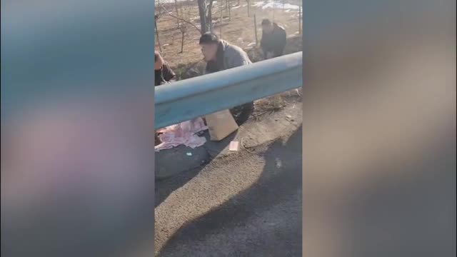 Phone footage shows one young woman, who has not been named, who looks as if she is wearing an Arctic fox fur coat, holding one of the terrified animals in her hands as she poses for a photo in front of the winter wonderland in Harbin, in China's northernmost Heilongjiang Province.