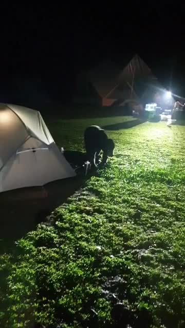 Footage shows the animal sniffing outside the pitched domes before scampering away when the campers scared it with flashlights at the Kaeng Krachan National Park in Phetchaburi province on May 4, 2023.
