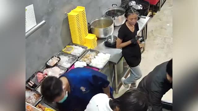 Footage shows a holidaymaker sneaking behind the toy soldier mime artist and taking off with his tip box before the entertainer called him to return without breaking out of character in Loei province, Thailand on July 2.