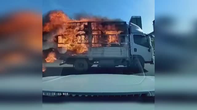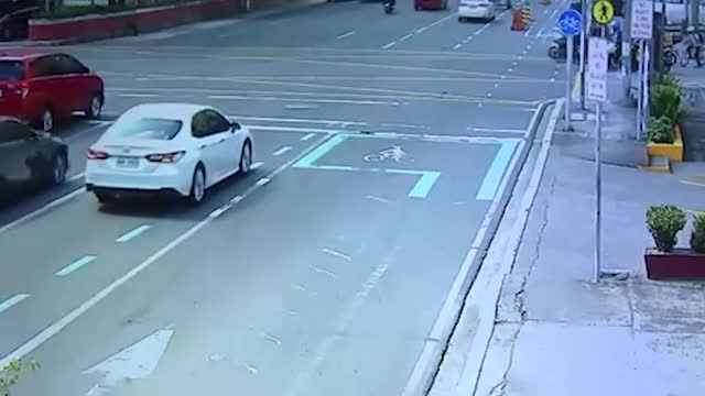 The six-wheeler carrying a crane and construction materials was approaching the intersection where other drivers stopped for the red light when it lost brakes in Manila, the Philippines, on January 3.