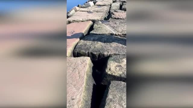 Footage shows the members of the Seacoast Science Centre Marine Mammal Rescue searching for the female gray seal pup that was spotted under the boulder gaps at the Frost Point in Odiorne Point State Park in Rye on March 13. 2024-03-21 12:40:44