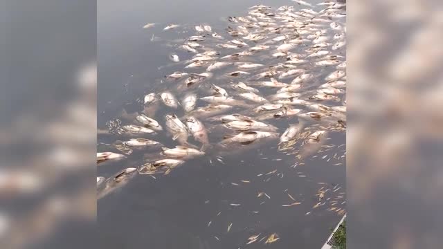 Images captured by an unnamed passerby show a large number of silver carp lying dead in the water of the East Lake in Donghu Park, located in Kunming, in China's south-western Yunnan Province. 2024-01-03 20:05:25
