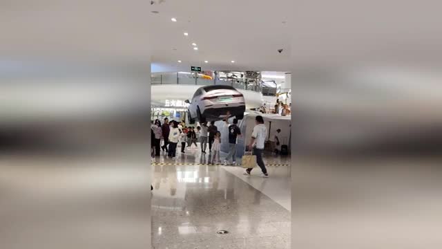 Smartphone video captured by eyewitnesses shows the two men strolling through the mall in the city of Beijing, in China, while holding the giant grey mid-size sedan balloon at the beginning of December. 2024-01-04 08:29:36