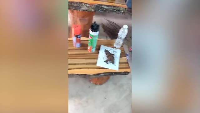 Footage shows Arnuphap using soapy water to clean the adhesive off the bird's feathers and remove it from the sticky pad in Nakhon Ratchasima, Thailand, on August 28. He then released it to his backyard and flew away.