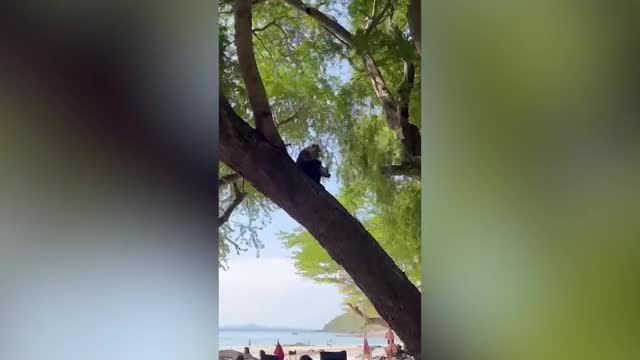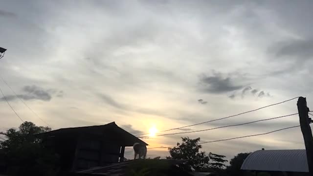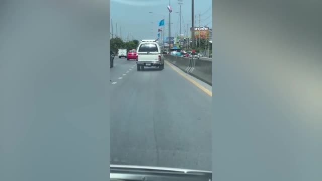 Footage shows the tall surges battering the motorcycles that were left on the concrete space during a storm in Samut Sakhon province.