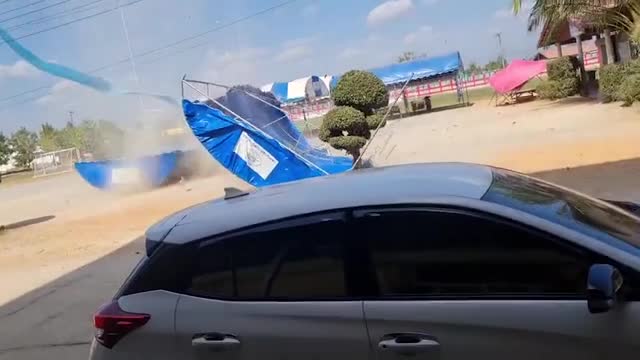 Dust devil tornado blows over tent